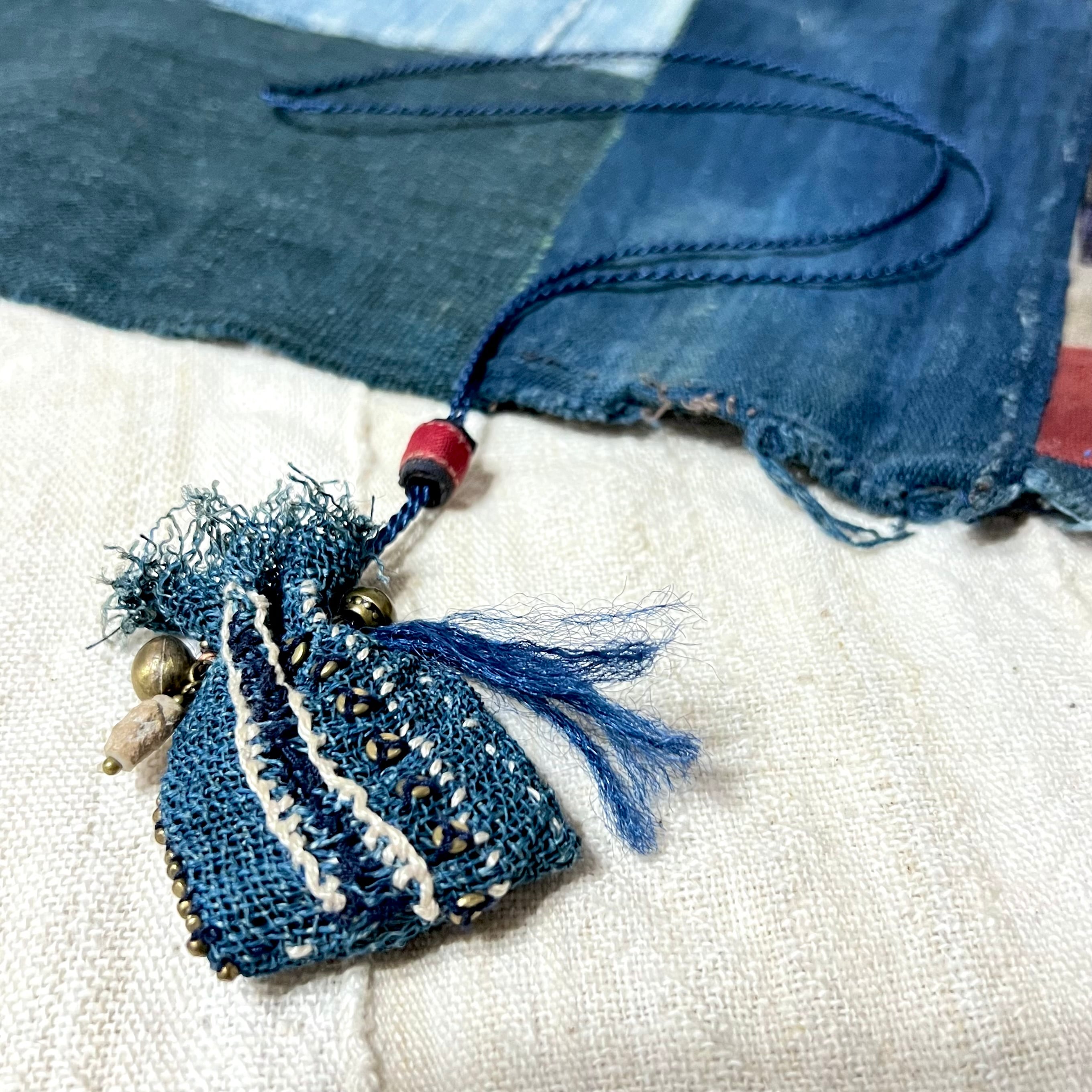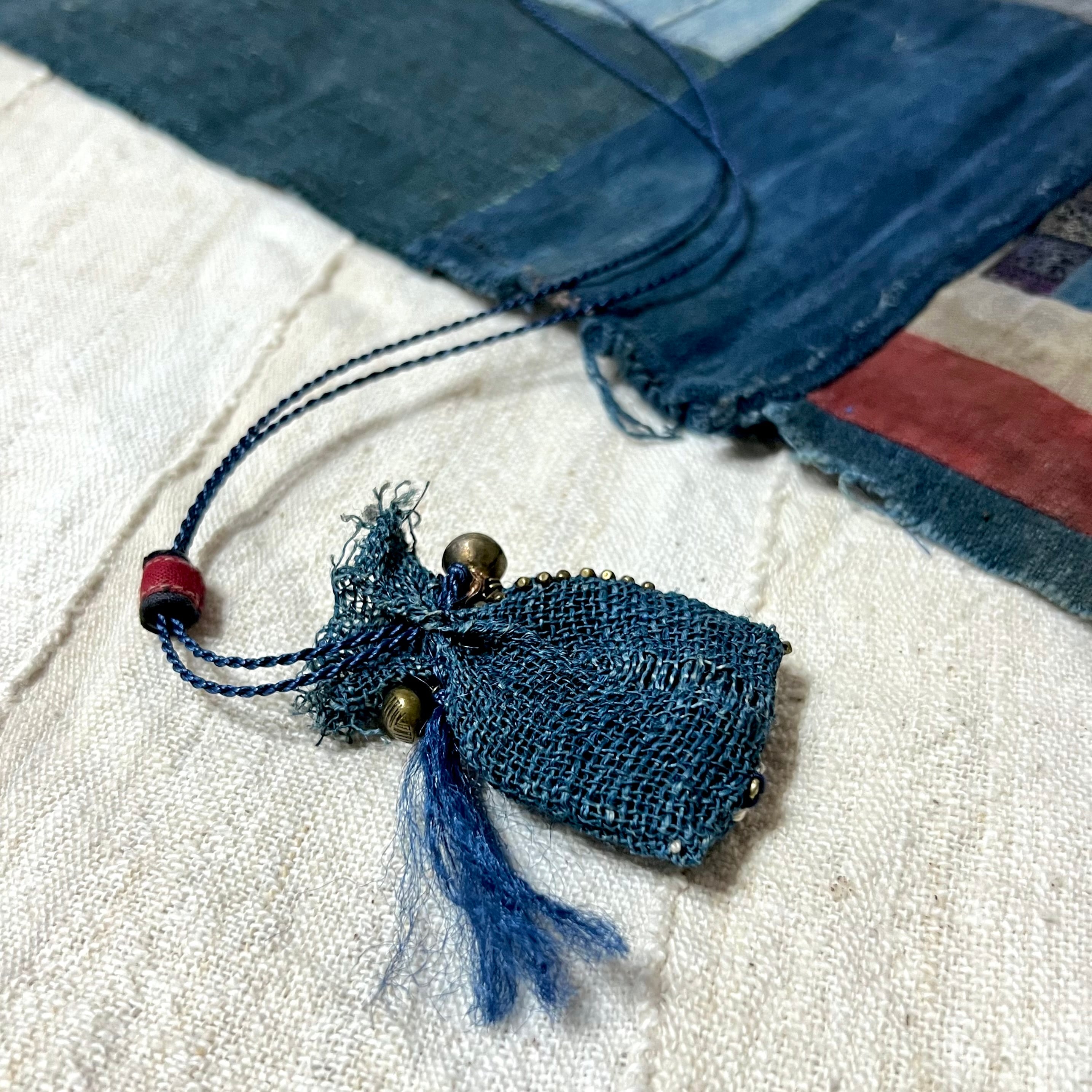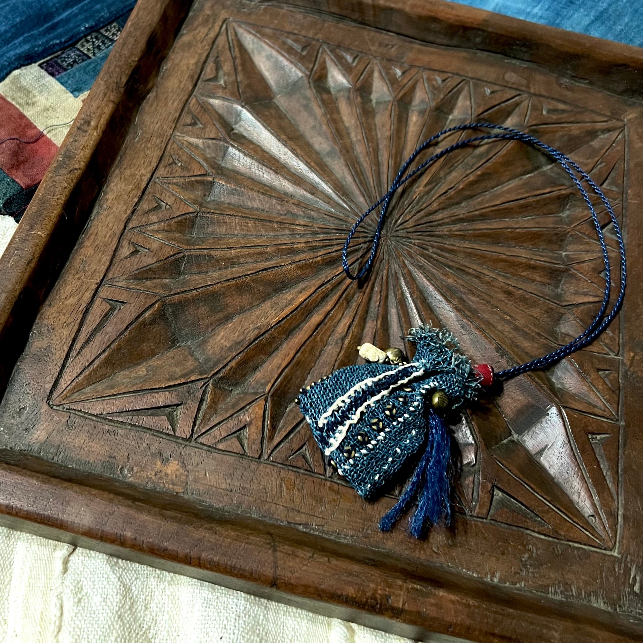 藍染古布 蚊帳のミニ巾着袋ネックレス