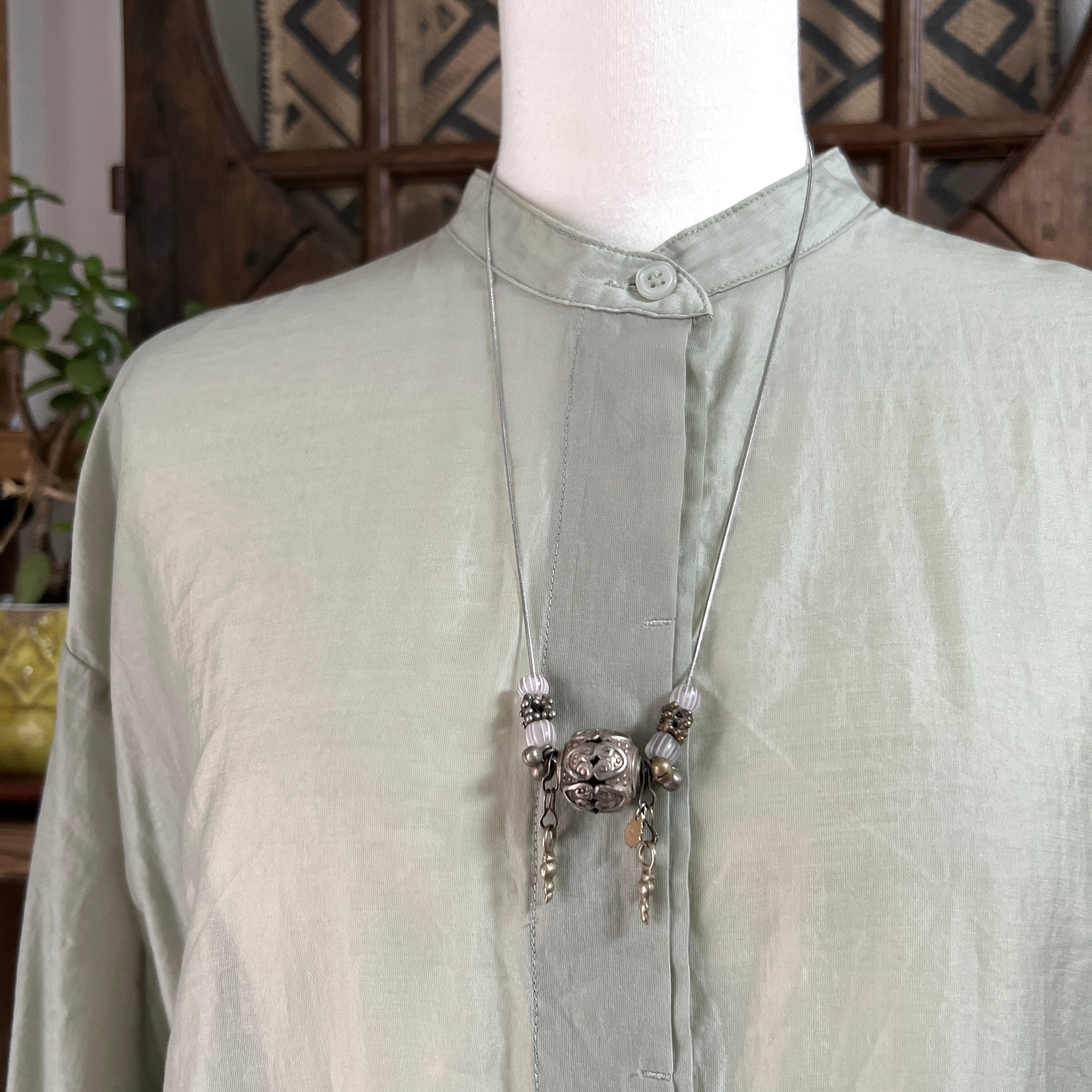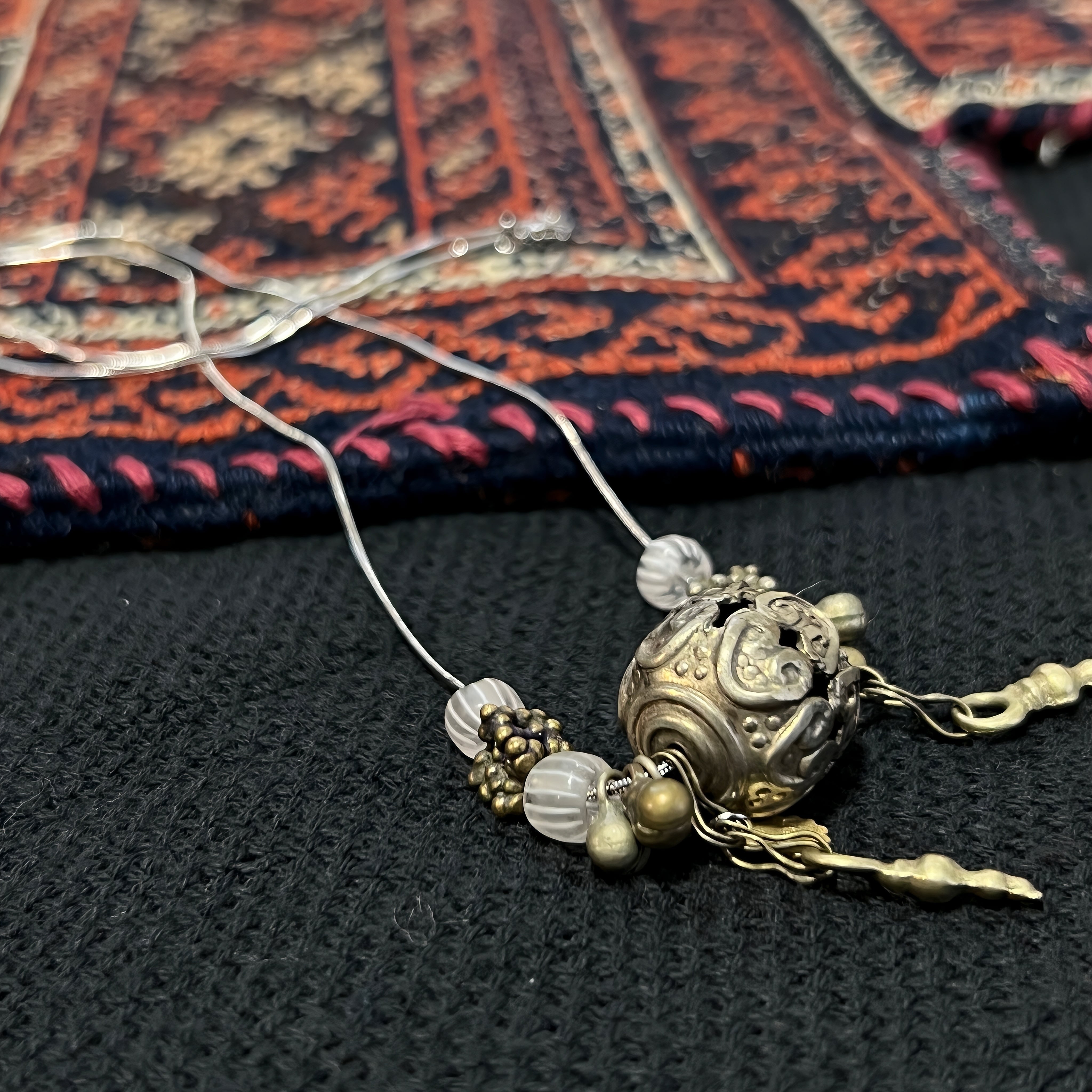 古いイエメンシルバーは、シルバーの純度が低いものがあったり、デザインの荒さがあったりもしますが、今回使用したパーツは、装身具の一部だったものらしく、大変希少なものかと思われます。
