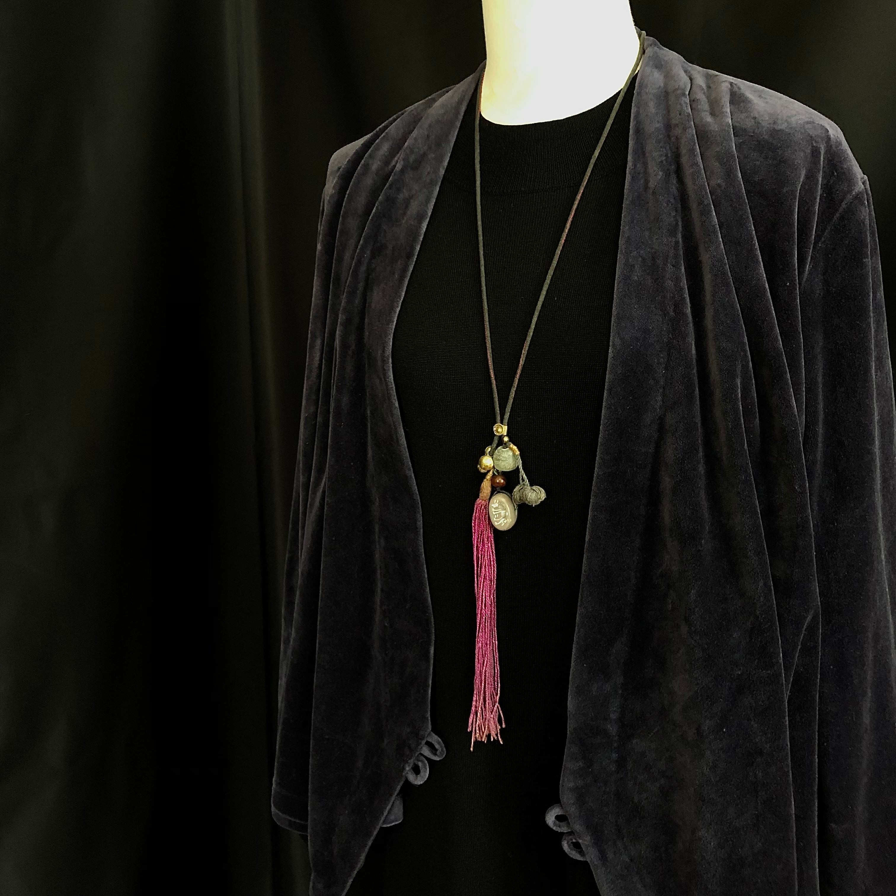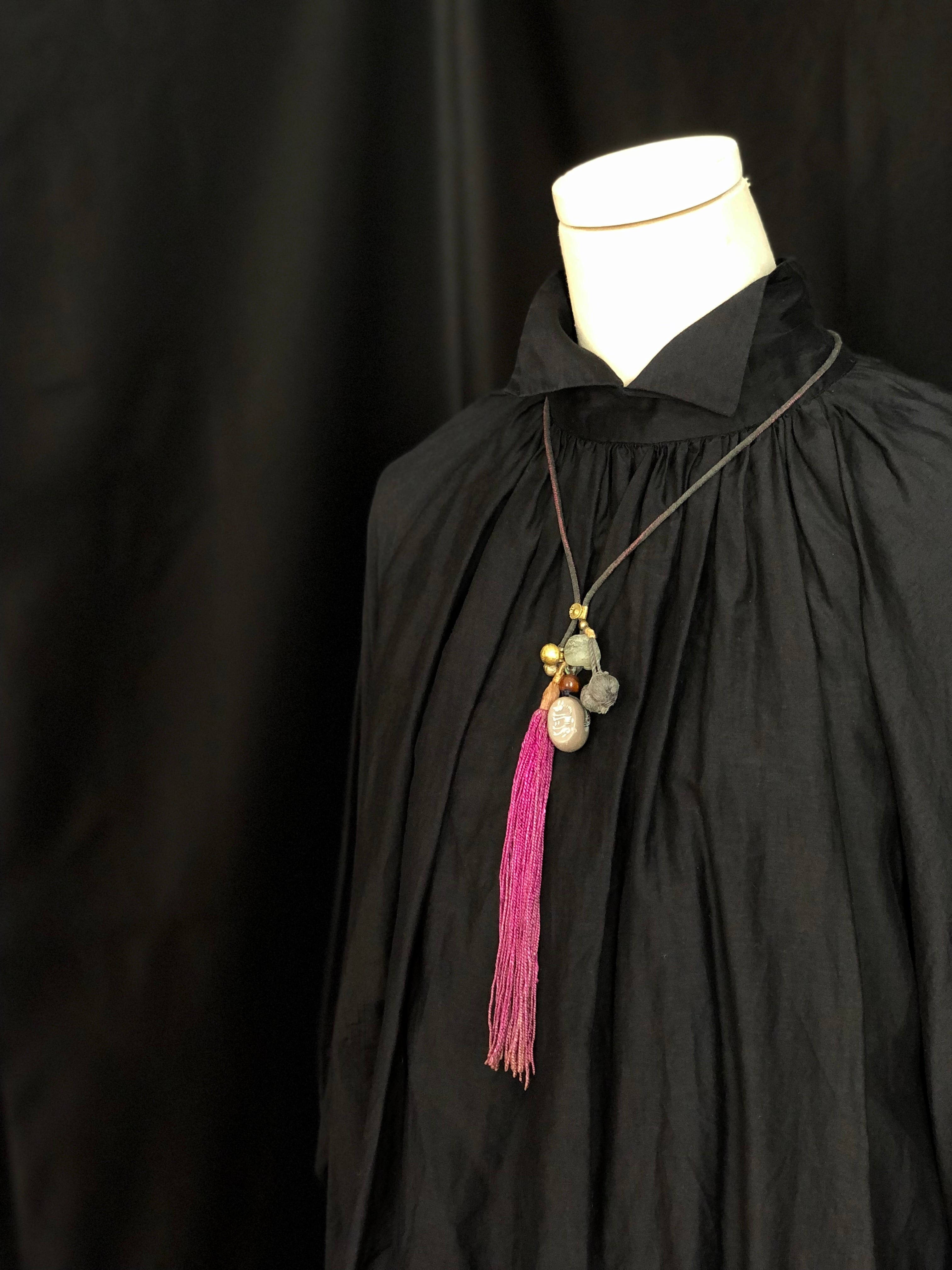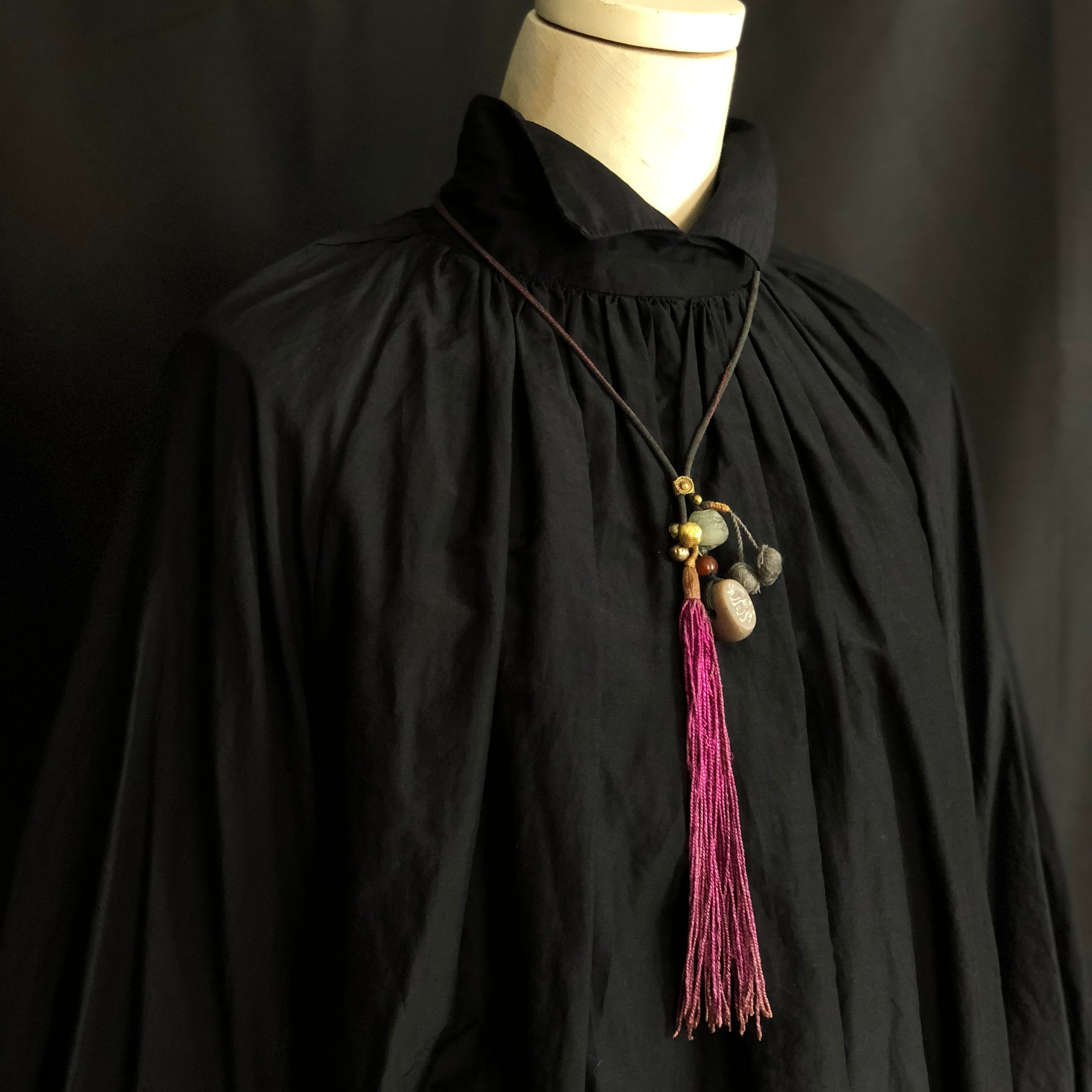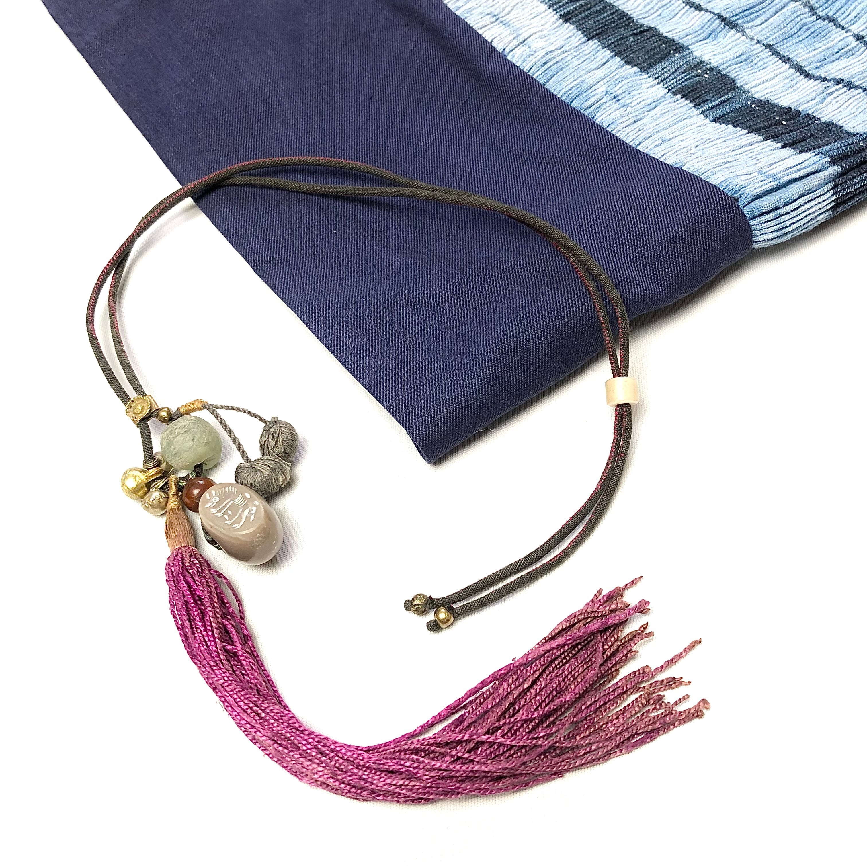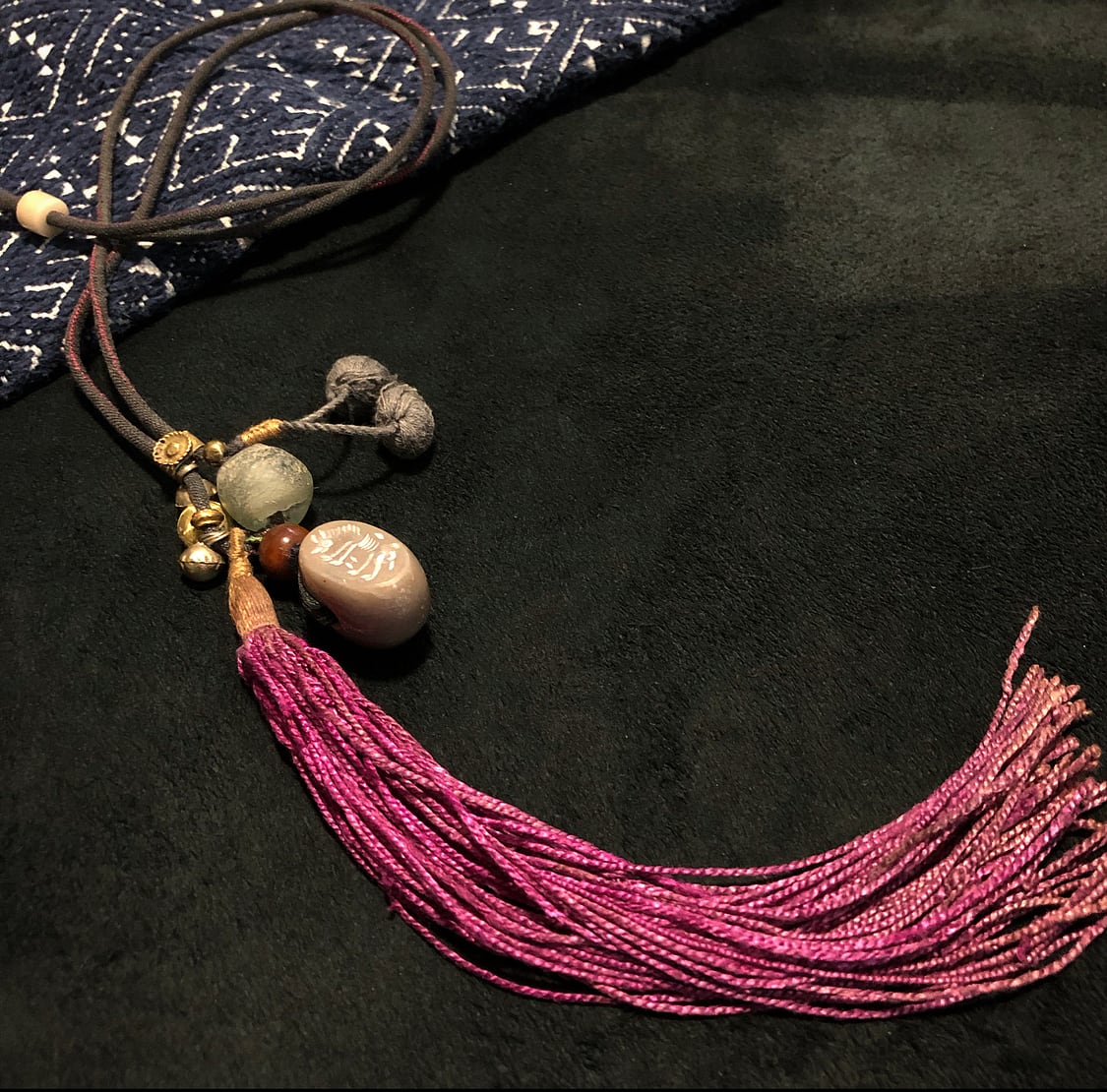 色褪せたピンクパープルのシルクタッセルが、軽やかに揺れて、存在感を示します。