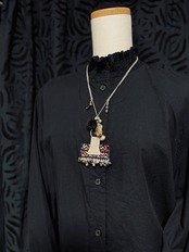 この2つを繋ぎ合わせ、さらにアフガニスタンやインドのパーツ、極小メタルビーズなどを装飾したデザインネックレスが完成しました。
