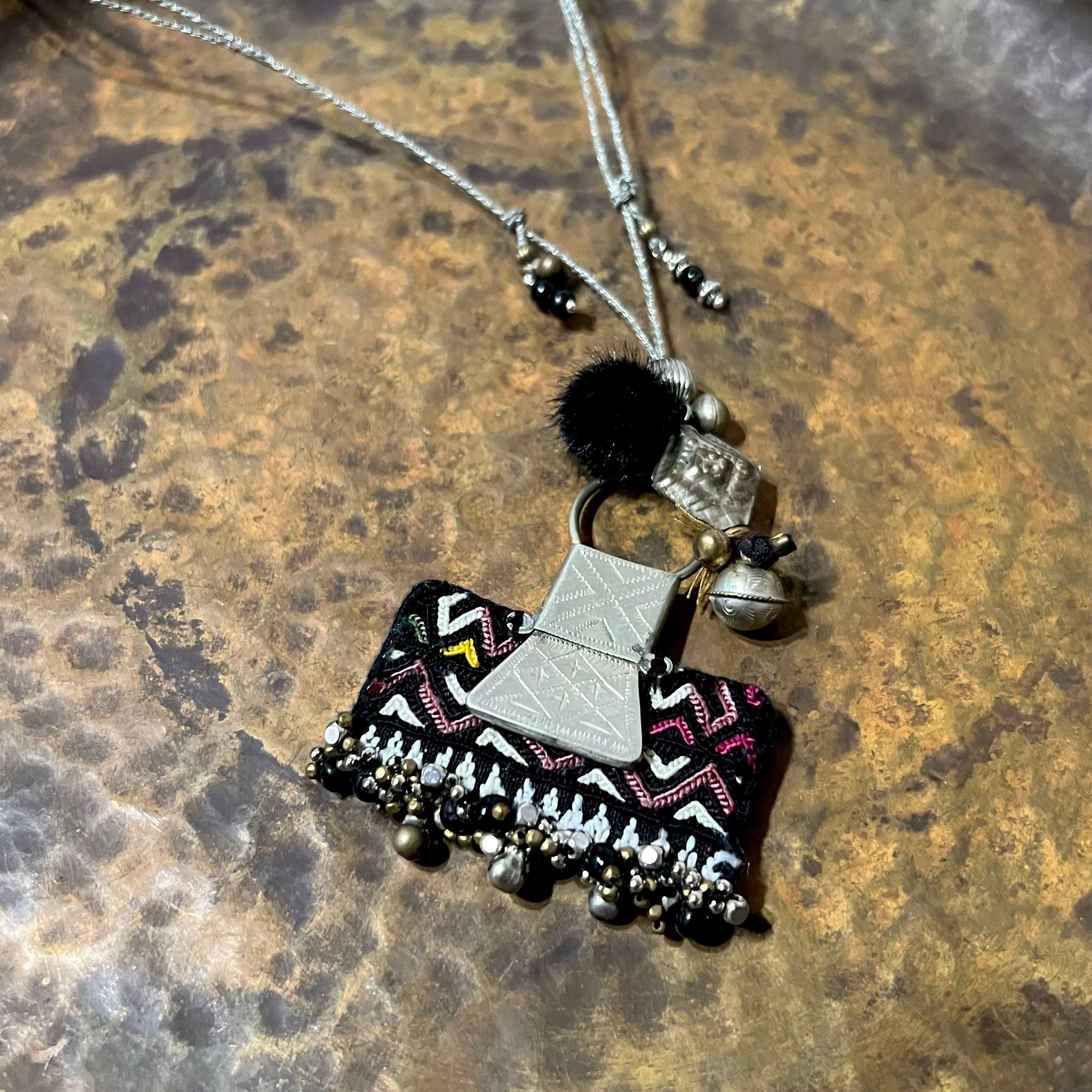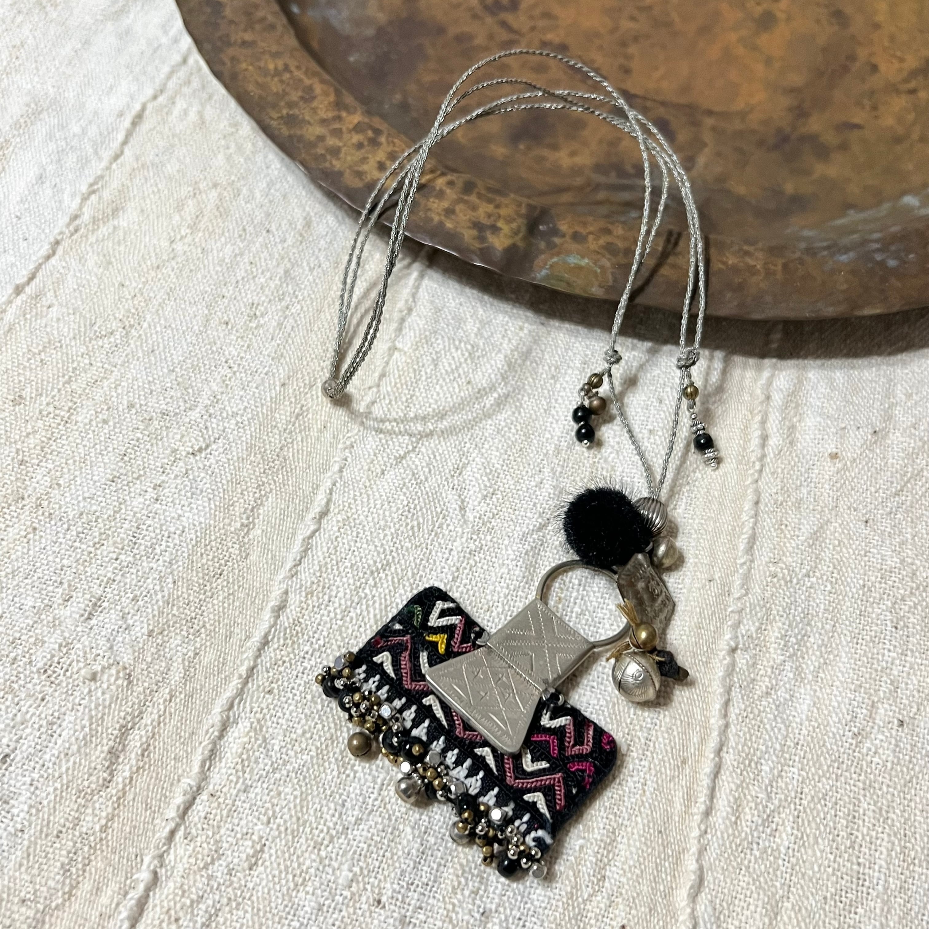 トルクメン刺繍とトゥアレグペンダントネックレス