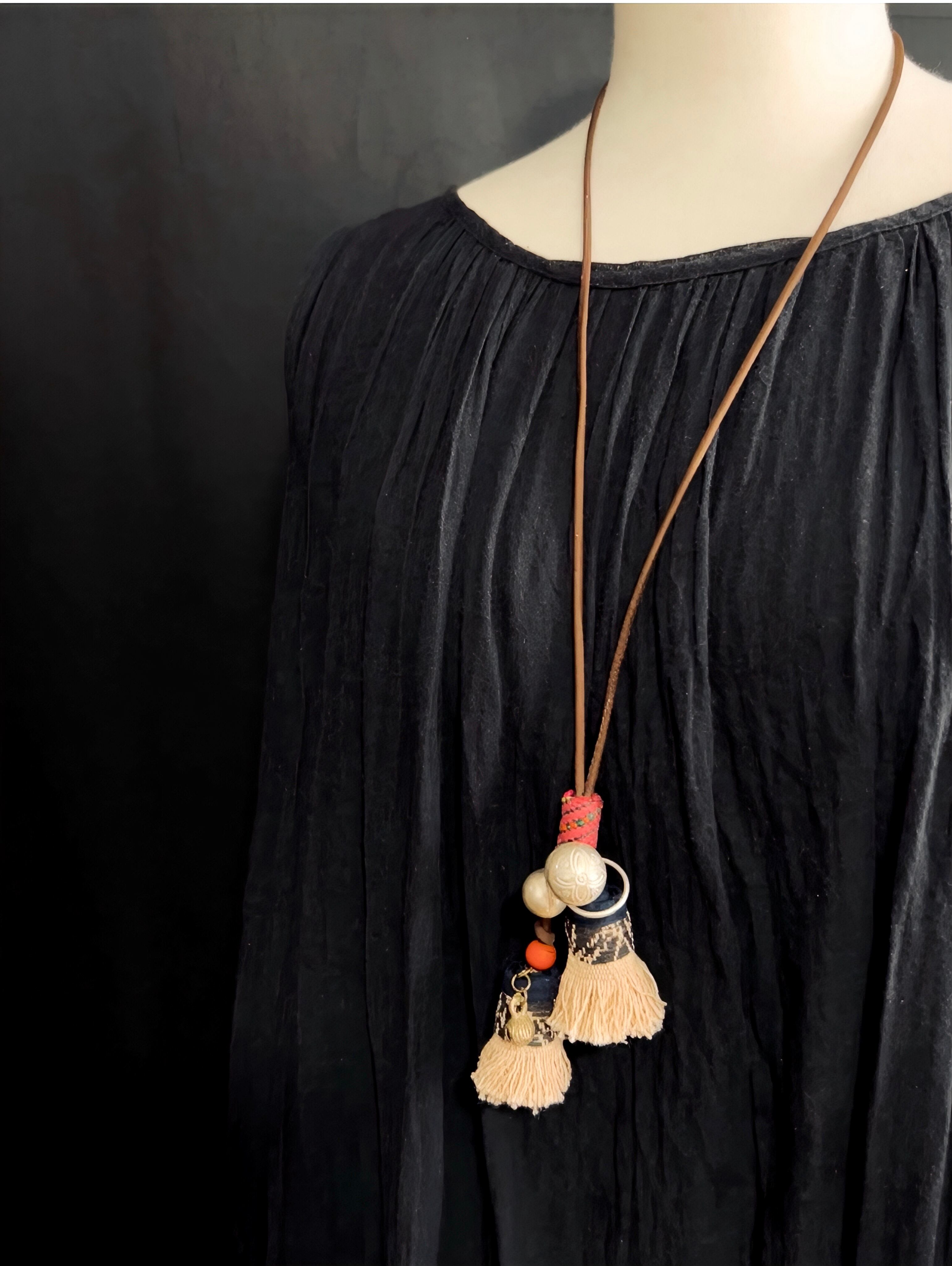 タイ族の織物タッセルとシルバーボールのネックレス