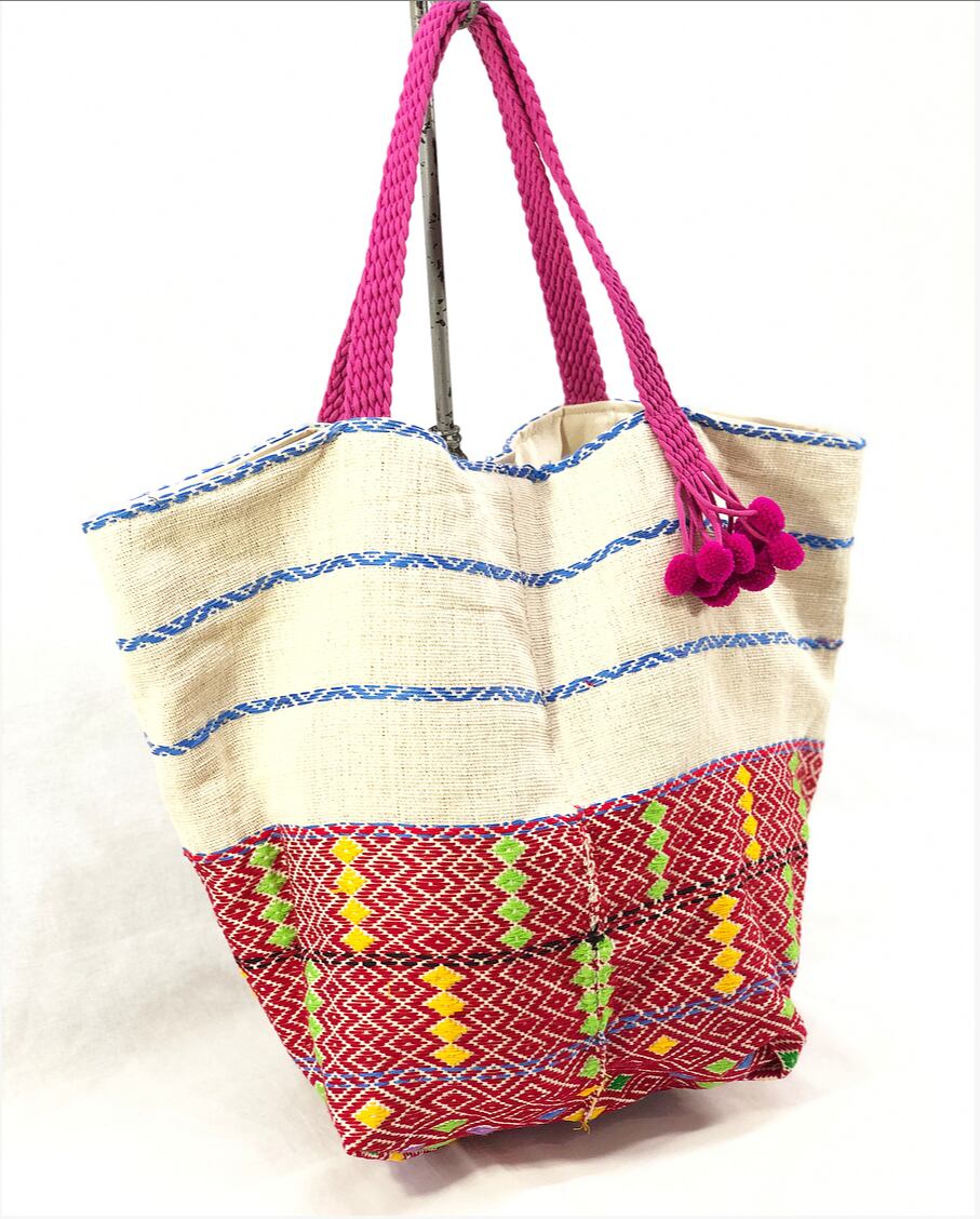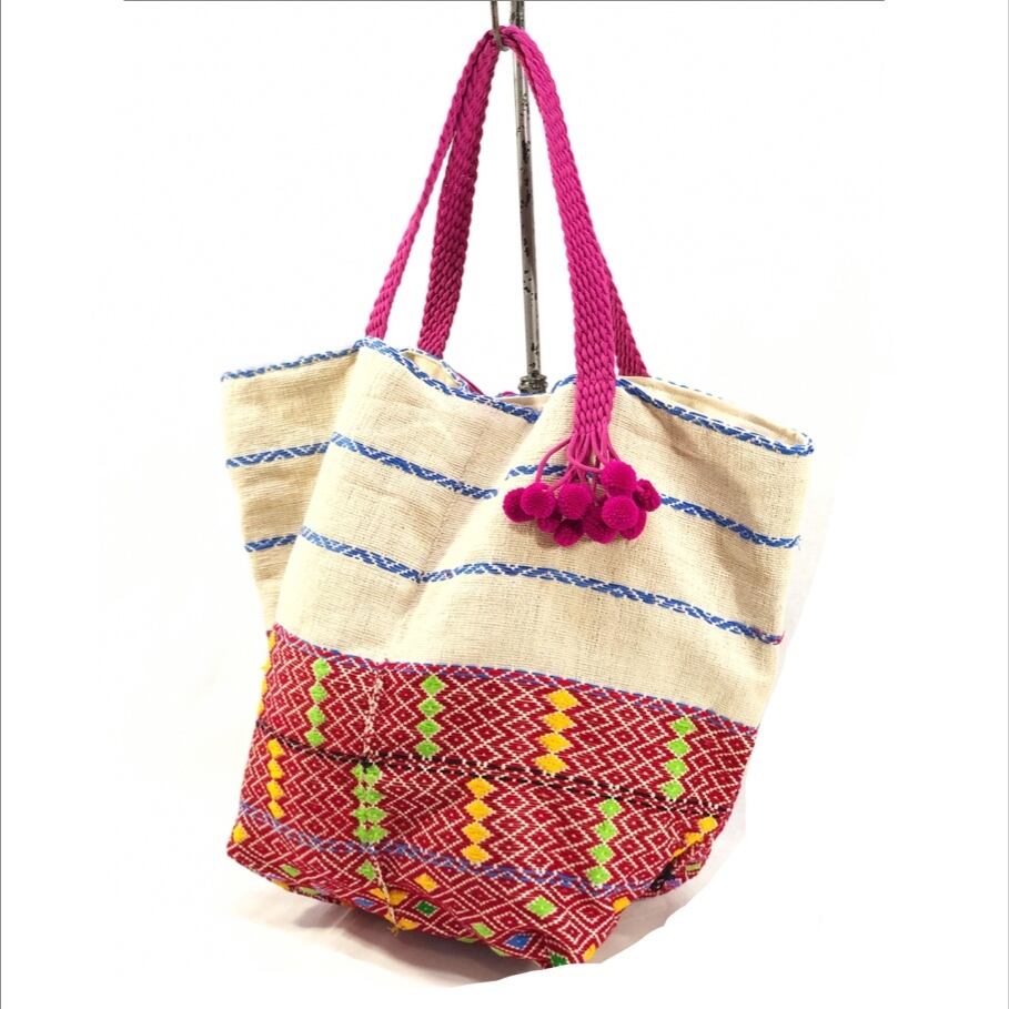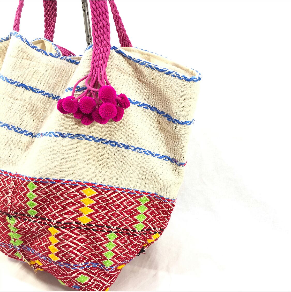 ◯タイ・カレン族の手織りコットンの貫頭衣(筒形の上着)をアレンジした、サイズ大きめなトートバッグです。