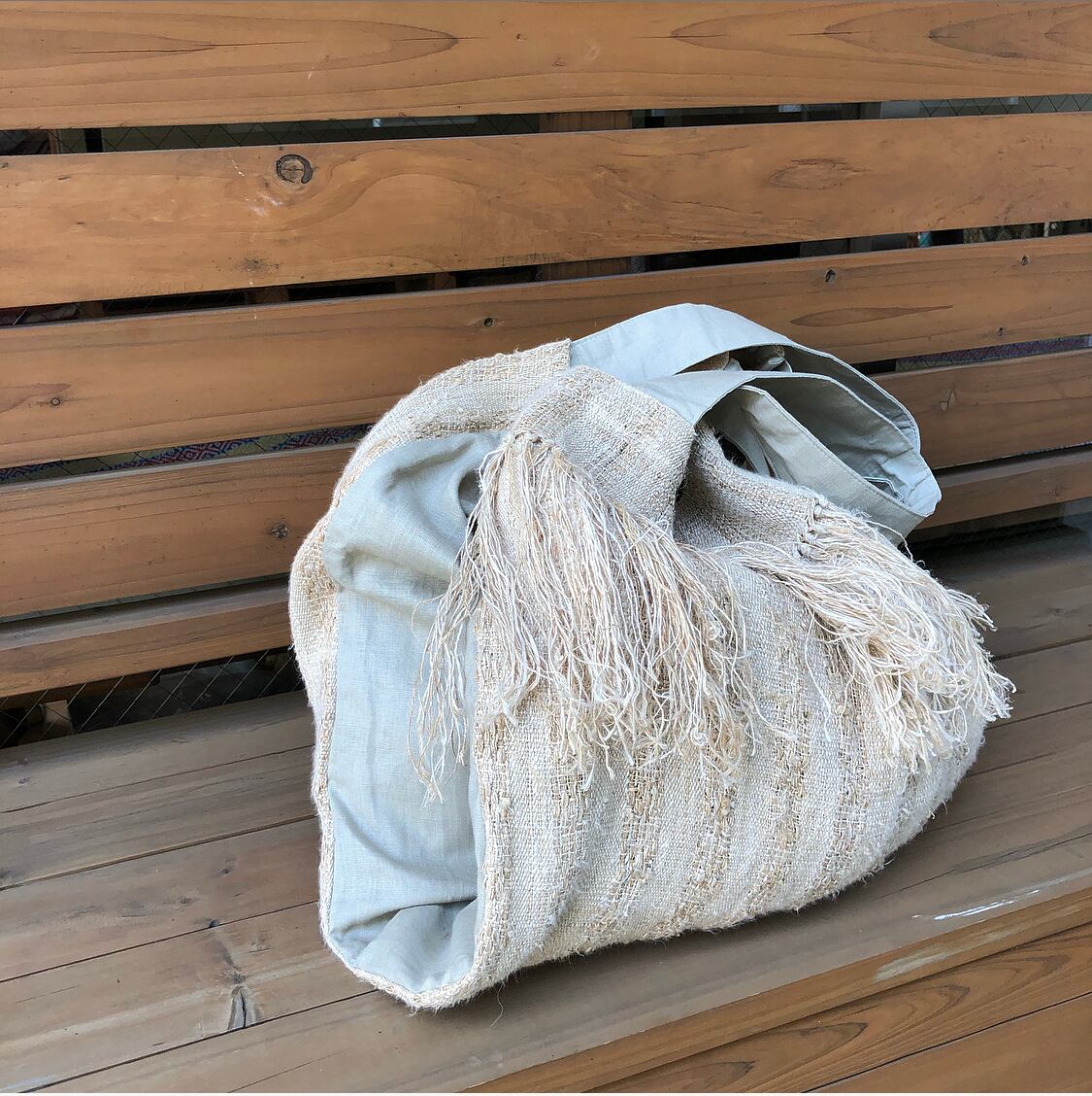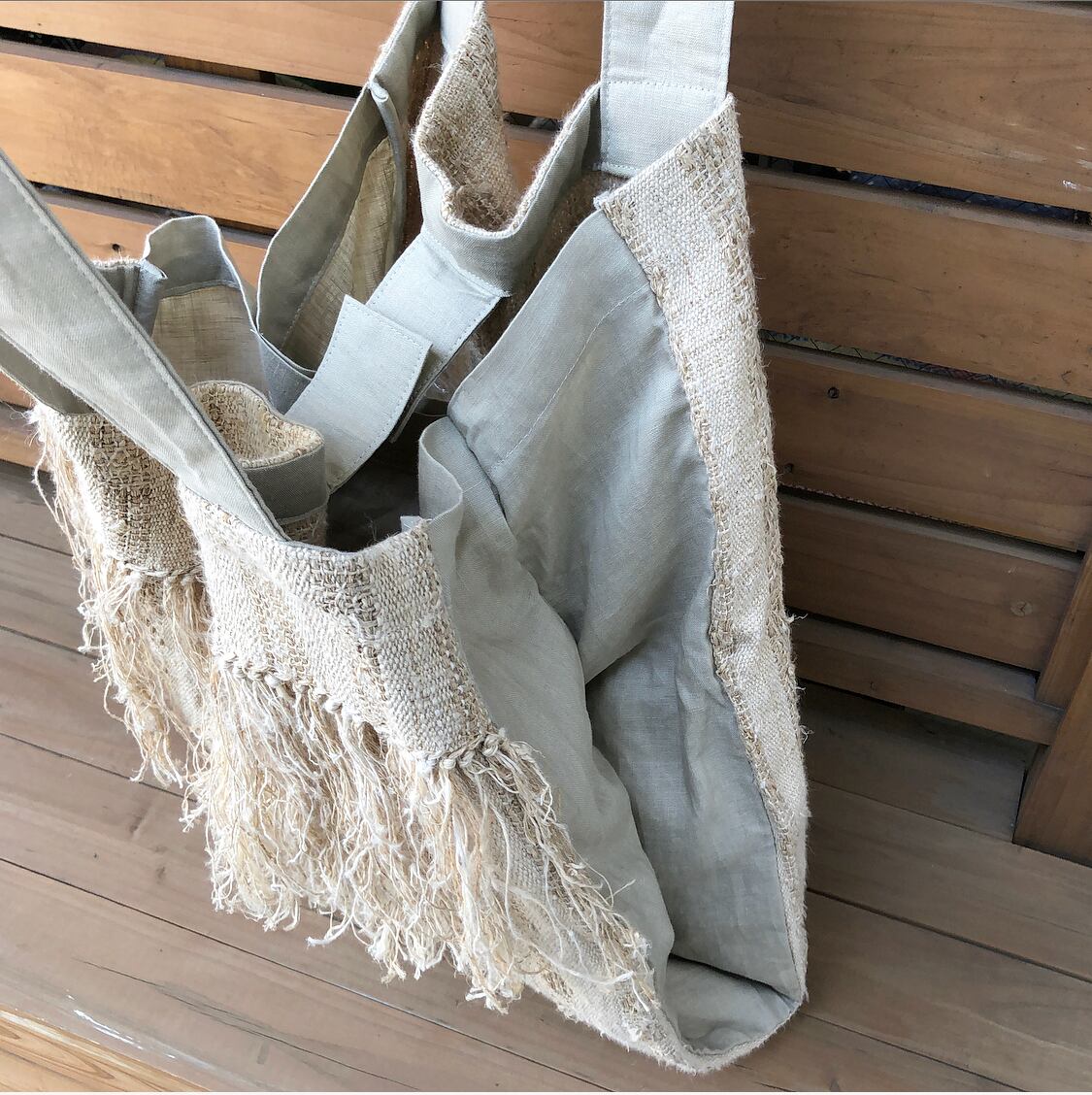 ◯タイ・チェンマイの手紡ぎの麻の織物と、日本製リネンを組み合わせたセパレートタイプのバッグです。