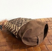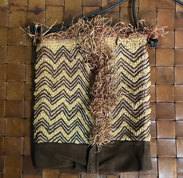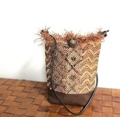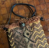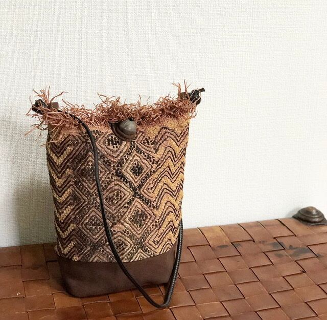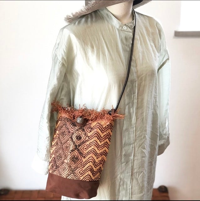 ◈アフリカ・クバ王国のショワ族の布。草ビロードと呼ばれるラフィアの刺繍布に、牛革を合わせて製作した民族サコッシュ? いえ、、民族ポシェットです。