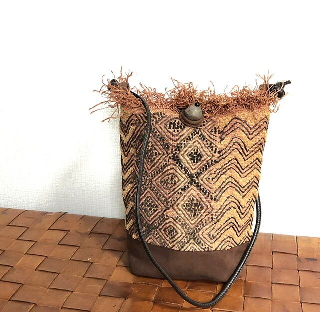 バッグ本体のボトムに選んだのは、ブラウンカラーのしなやかなスウェード牛革。クバ布との相性も◎