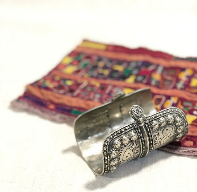 時代は、はっきりしませんが、アフガニスタン北部のトルクメン人が作った彫刻が美しいカフブレスレットです。