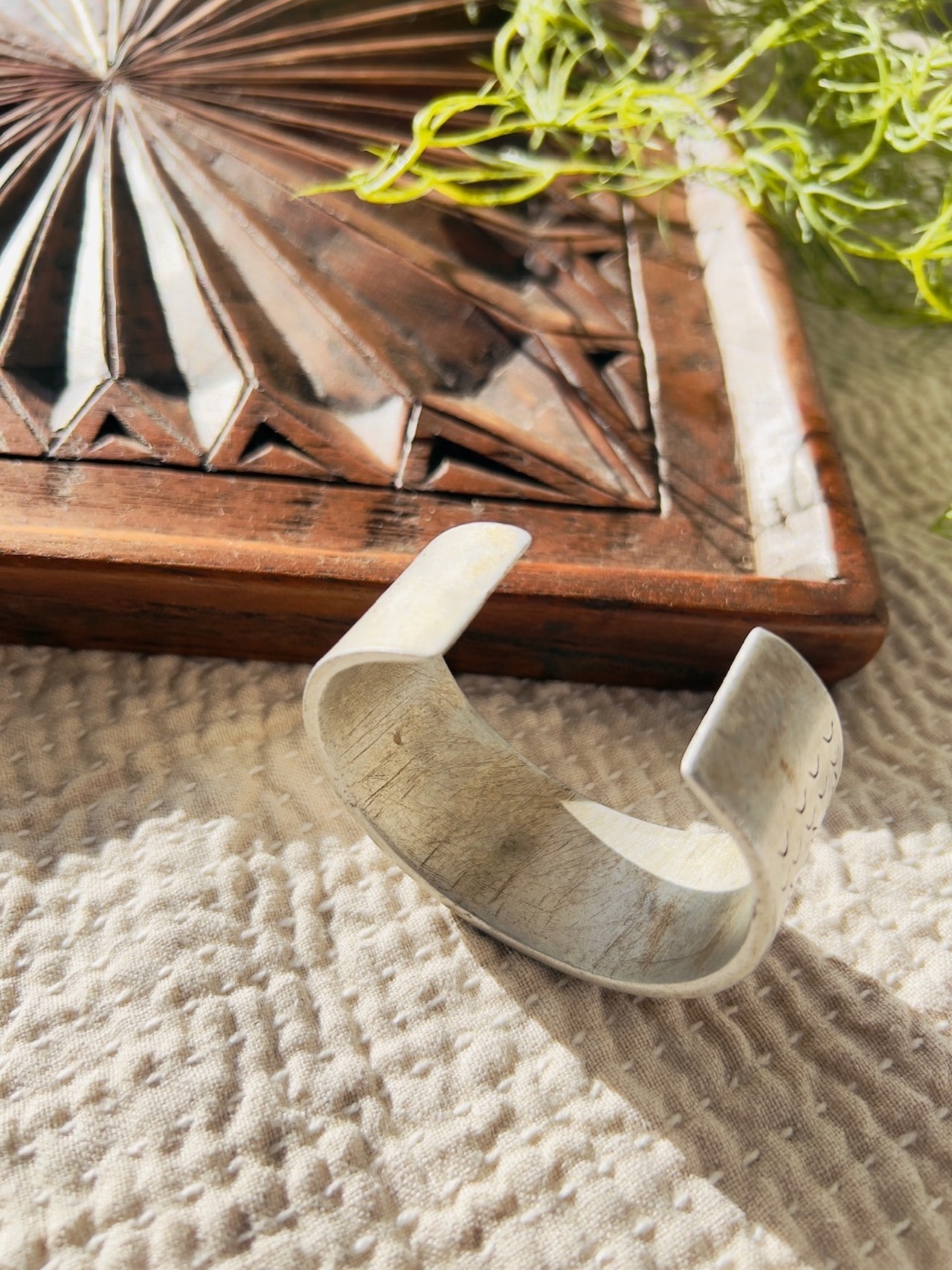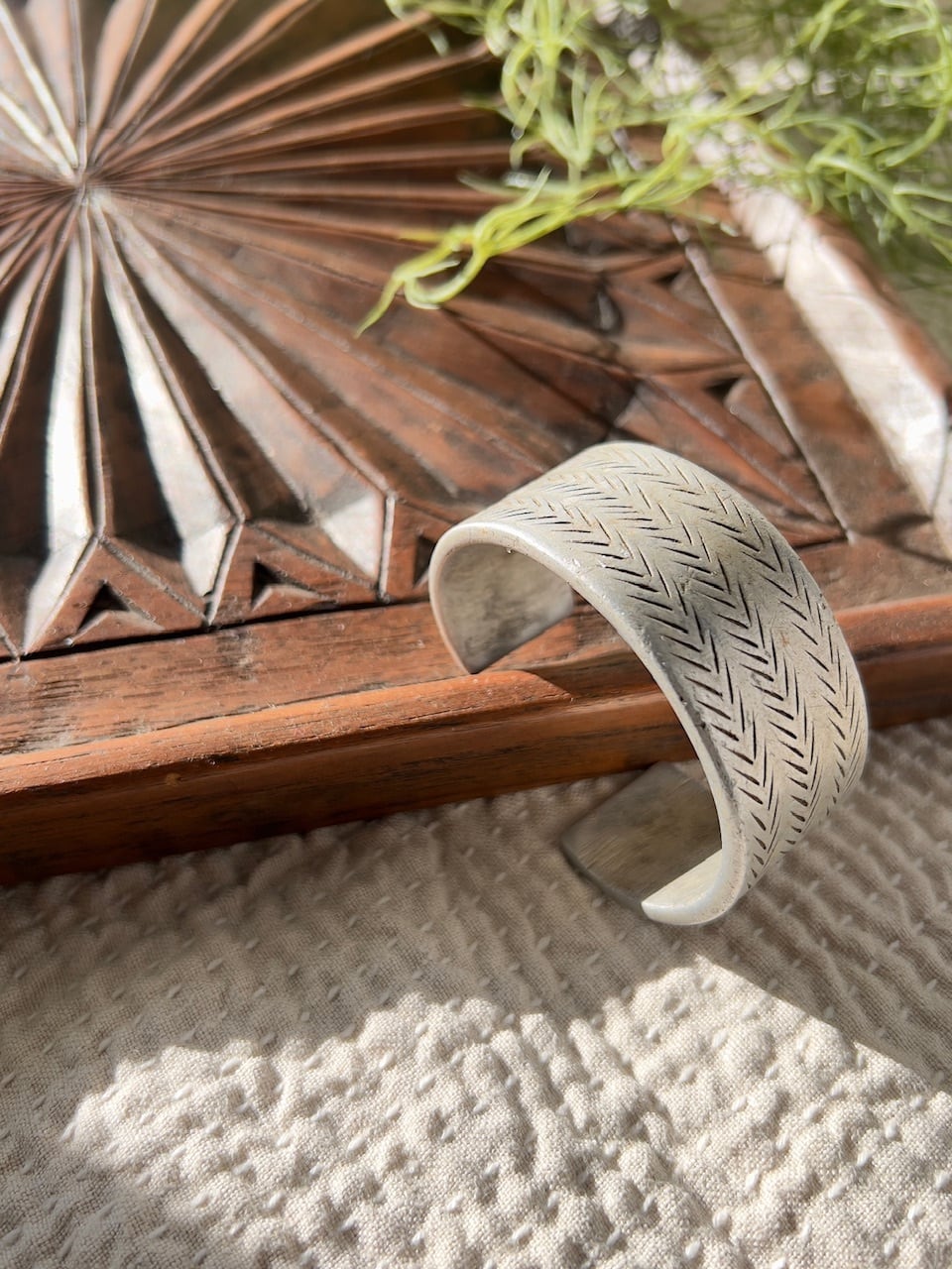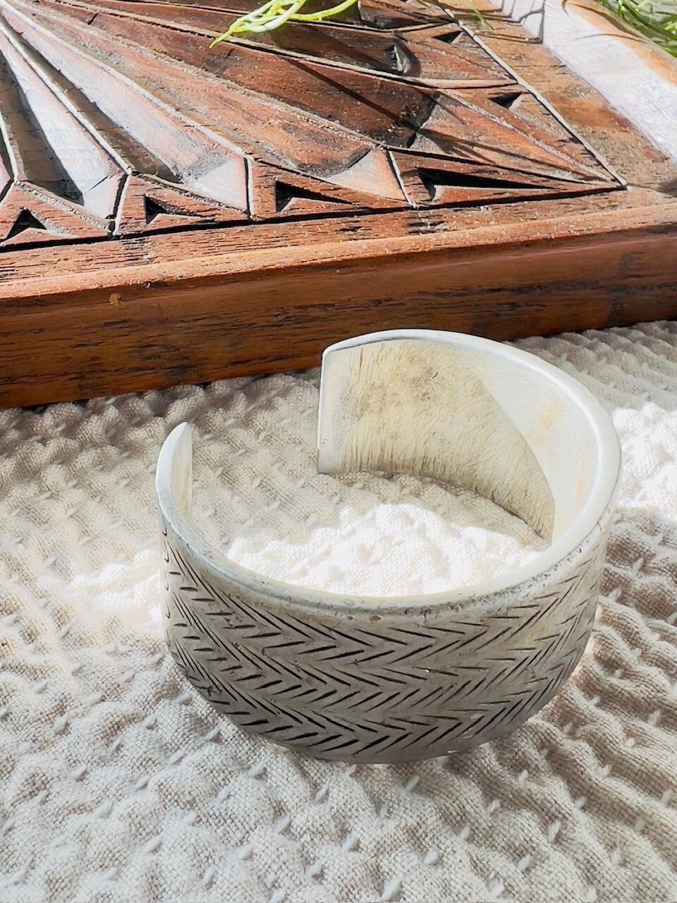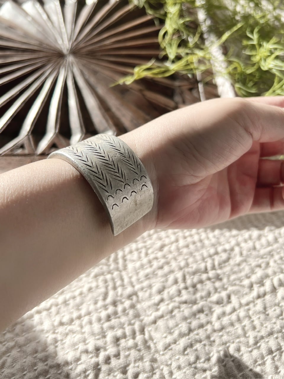 藍染や天然色素で染めた布に細かな刺繍。とてもお洒落な民族がつくるアルミバングルは、レア品です。
