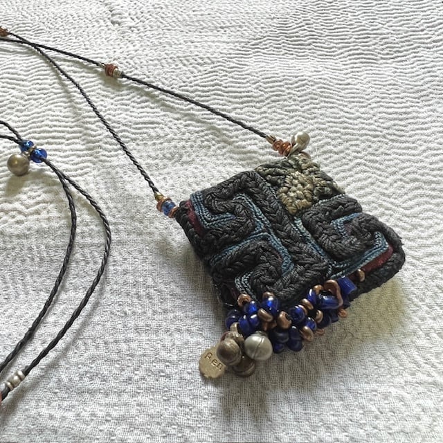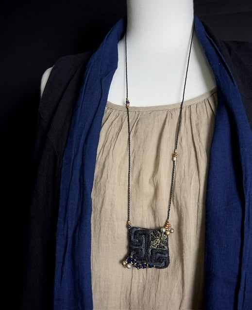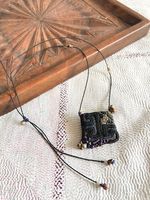 黒モン族刺繍とビンテージビーズのロングネックレス